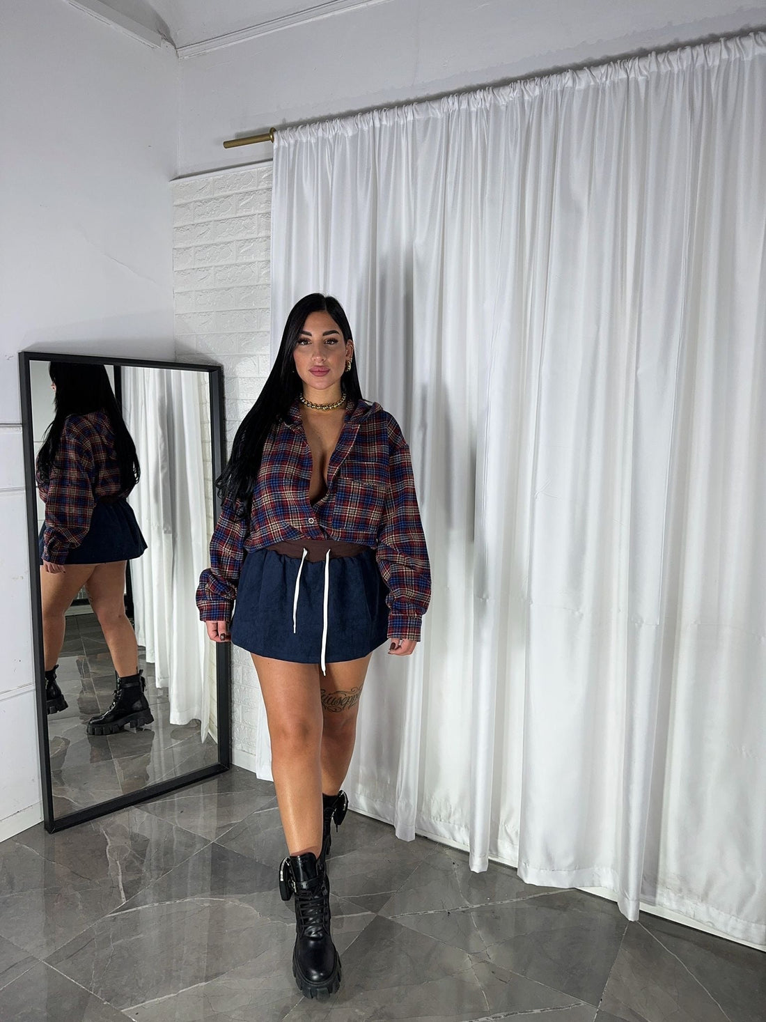 gonna camoscia - la modella indossa la S