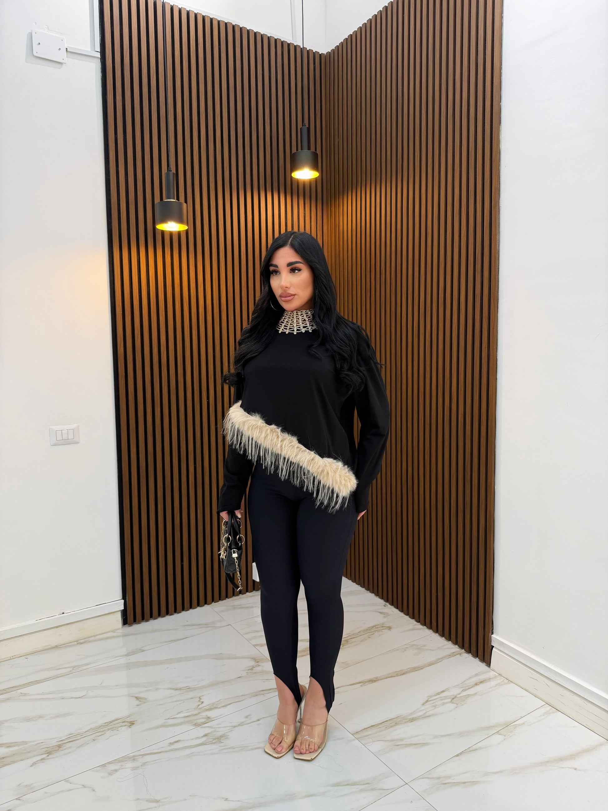 MAGLIA PIUME ASIMMETRICA NERO